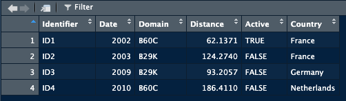 An alternative, that often looks visually identical, but is quite different, is the matrix. While the dataframe is a specific structure to arrange data, a matrix is a mathematical object. This means that we can perform mathematical operations on it (matrix multiplication, inversion). Different functions in R will sometimes require a matrix and sometimes a dataframe (or accept both).