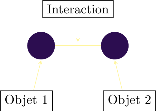 If the interaction between objects takes place in both directions, we speak of a \(\textbf{nondirected}\) network. Classically, this type of interaction is represented by a line without arrows between objects. Figure \(\ref{nw_simple_nondirected}\) gives an example of this type of network.